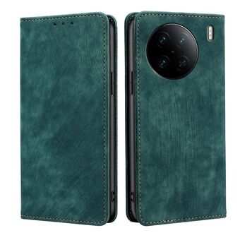 For vivo X90 Pro 5G RFID Anti-theft Brush Magnetic Leather Phone Case(Green)