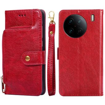 For vivo X90 Pro 5G Zipper Bag Leather Phone Case(Red)