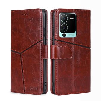 For vivo V25 Pro 5G Geometric Stitching Horizontal Flip Leather Phone Case(Dark Brown)