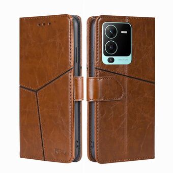 For vivo V25 Pro 5G Geometric Stitching Horizontal Flip Leather Phone Case(Light Brown)