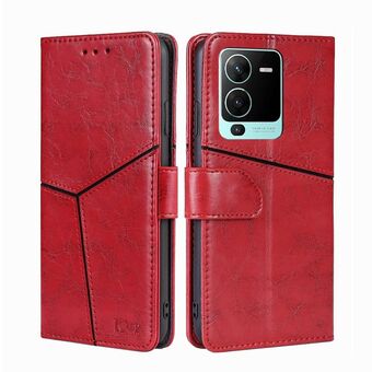 For vivo V25 Pro 5G Geometric Stitching Horizontal Flip Leather Phone Case(Red)