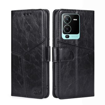 For vivo V25 Pro 5G Geometric Stitching Horizontal Flip Leather Phone Case(Black)