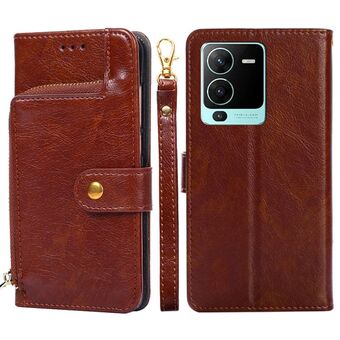For vivo V25 Pro 5G Zipper Bag Leather Phone Case(Brown)