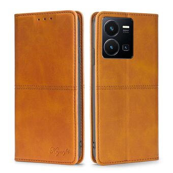 For vivo Y35 4G / Y22 / Y22s Cow Texture Magnetic Leather Phone Case(Light Brown)