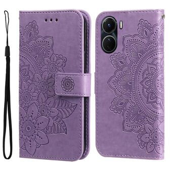 For vivo Y16 / Y02s 7-petal Flowers Embossing Leather Phone Case(Light Purple)