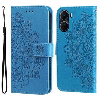 For vivo Y16 / Y02s 7-petal Flowers Embossing Leather Phone Case(Blue)