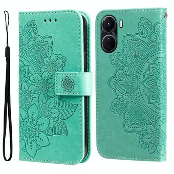 For vivo Y16 / Y02s 7-petal Flowers Embossing Leather Phone Case(Green)