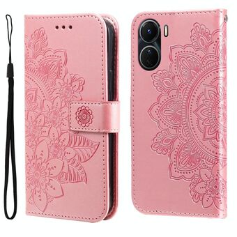 For vivo Y16 / Y02s 7-petal Flowers Embossing Leather Phone Case(Rose Gold)