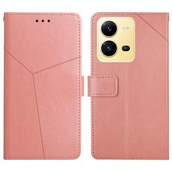 For vivo X80 Lite/V25 5G HT01 Y-shaped Pattern Flip Leather Phone Case(Pink)