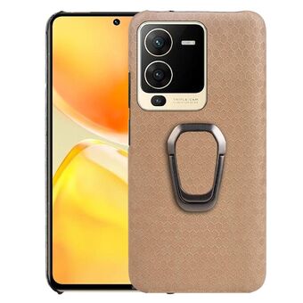 For vivo S15 Pro Ring Holder Honeycomb PU Phone Case(Coffee)