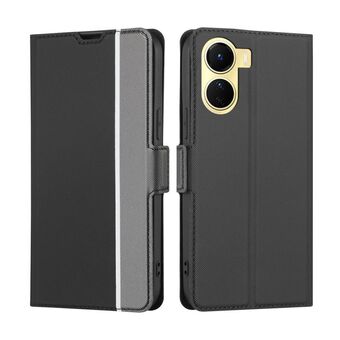 For vivo Y16 4G/Y02s 4G Twill Texture Side Buckle Leather Phone Case(Black)