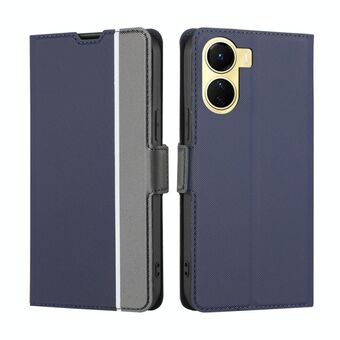 For vivo Y16 4G/Y02s 4G Twill Texture Side Buckle Leather Phone Case(Blue)