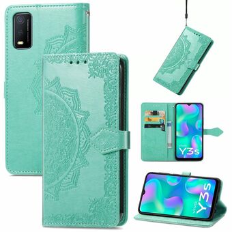 For vivo Y3s 2021 Mandala Flower Embossed Horizontal Flip Leather Phone Case(Green)
