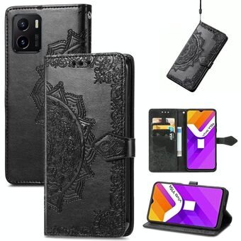 For vivo Y15S Mandala Flower Embossed Horizontal Flip Leather Phone Case(Black)