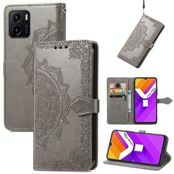 For vivo Y3s 2021 Mandala Flower Embossed Horizontal Flip Leather Phone Case(Grey)