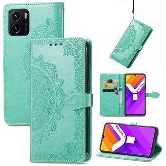 For vivo Y15S Mandala Flower Embossed Horizontal Flip Leather Phone Case(Green)