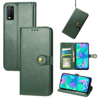 For vivo Y3s 2021 Solid Color Leather Buckle Phone Case(Green)