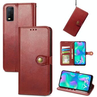 For vivo Y3s 2021 Solid Color Leather Buckle Phone Case(Red)