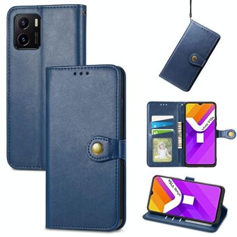 For vivo Y15s Solid Color Leather Buckle Phone Case(Blue)