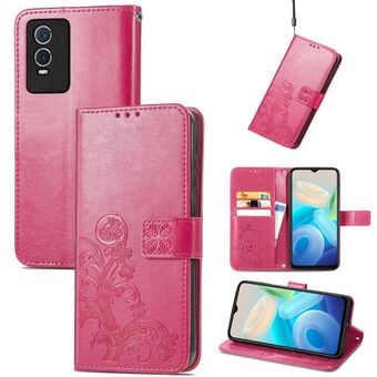 For Vivo Y76s Four-leaf Clasp Embossed Leather Phone Case(Magenta)