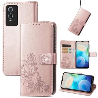 For Vivo Y76s Four-leaf Clasp Embossed Leather Phone Case(Rose Gold)