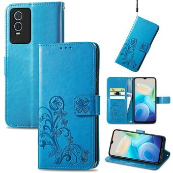For Vivo Y76s Four-leaf Clasp Embossed Leather Phone Case(Blue)