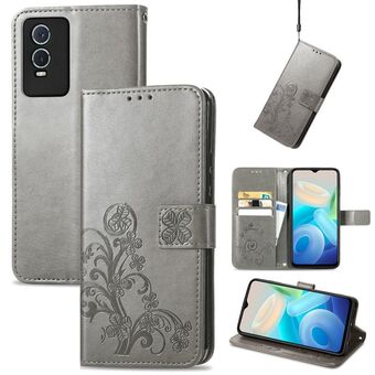 For Vivo Y76s Four-leaf Clasp Embossed Leather Phone Case(Grey)
