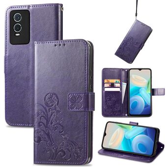 For Vivo Y76s Four-leaf Clasp Embossed Leather Phone Case(Purple)