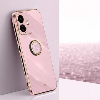 For vivo Y77 5G Global XINLI Straight Edge 6D Electroplate TPU Phone Case with Ring Holder(Cherry Purple)