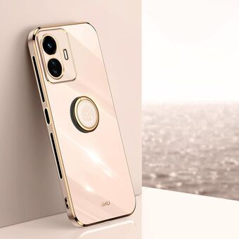 For vivo Y77 5G Global XINLI Straight Edge 6D Electroplate TPU Phone Case with Ring Holder(Pink)