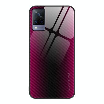 For vivo V21 Texture Gradient Glass TPU Phone Case(Rose Red)