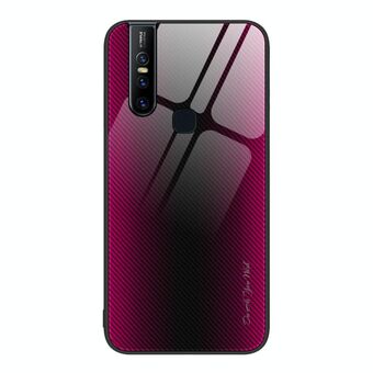 For vivo V15 Texture Gradient Glass TPU Phone Case(Rose Red)