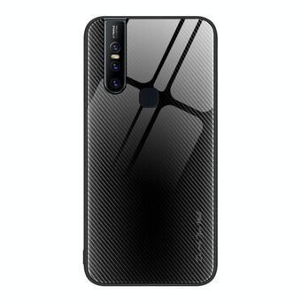 For vivo V15 Texture Gradient Glass TPU Phone Case(Black)