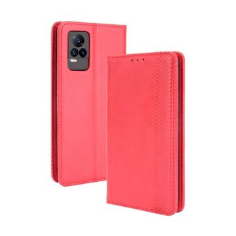 For vivo V21e 4G / Y73 2021 Magnetic Buckle Retro Crazy Horse Texture Horizontal Flip Leather Case with Holder & Card Slots & Photo Frame(Red)
