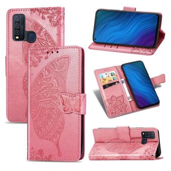 For vivo Y50 Butterfly Love Flower Embossed Horizontal Flip Leather Case with Bracket / Card Slot / Wallet / Lanyard(Pink)