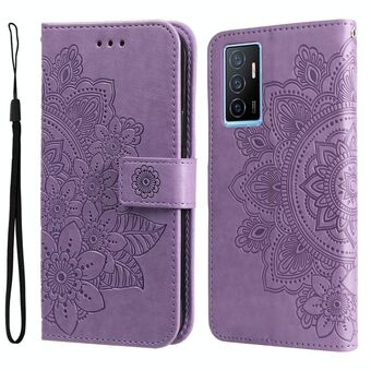 For vivo V21 Texture Gradient Glass TPU Phone Case(Dark Blue)