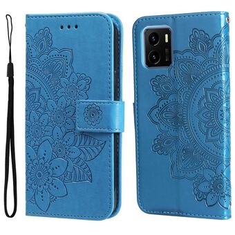 For vivo Y15s 2021 / Y15a 7-petal Flowers Embossed Flip Leather Phone Case(Blue)