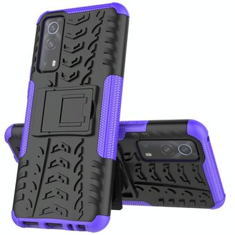For Vivo iQOO Z3 Tire Texture Shockproof TPU+PC Protective Case with Holder(Purple)