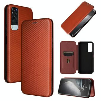For vivo Y51 2020 Carbon Fiber Texture Horizontal Flip TPU + PC + PU Leather Case with Card Slot(Brown)