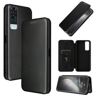 For vivo Y51 2020 Carbon Fiber Texture Horizontal Flip TPU + PC + PU Leather Case with Card Slot(Black)