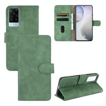 For vivo X60 5G Solid Color Skin Feel Magnetic Buckle Horizontal Flip Calf Texture PU Leather Case with Holder & Card Slots & Wallet(Green)