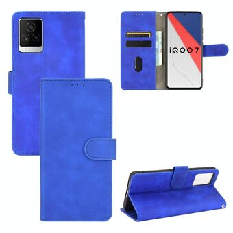 For vivo iQOO 7 Solid Color Skin Feel Magnetic Buckle Horizontal Flip Calf Texture PU Leather Case with Holder & Card Slots & Wallet(Blue)