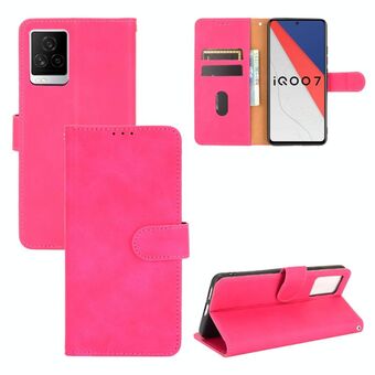 For vivo iQOO 7 Solid Color Skin Feel Magnetic Buckle Horizontal Flip Calf Texture PU Leather Case with Holder & Card Slots & Wallet(Rose Red)