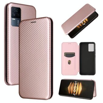 For vivo iQOO 7 5G Carbon Fiber Texture Horizontal Flip TPU + PC + PU Leather Case with Card Slot(Pink)