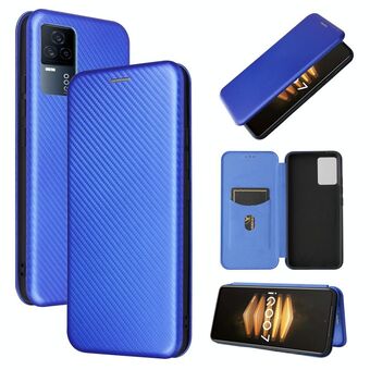 For vivo iQOO 7 5G Carbon Fiber Texture Horizontal Flip TPU + PC + PU Leather Case with Card Slot(Blue)
