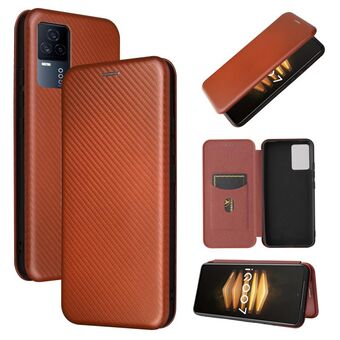 For vivo iQOO 7 5G Carbon Fiber Texture Horizontal Flip TPU + PC + PU Leather Case with Card Slot(Brown)