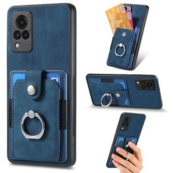 For vivo V21 5G Retro Skin-feel Ring Card Wallet Phone Case(Blue)