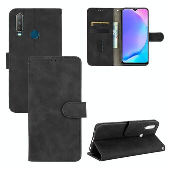 For vivo Y17 / Y15 / Y12 Solid Color Skin Feel Magnetic Buckle Horizontal Flip Calf Texture PU Leather Case with Holder & Card Slots & Wallet(Black)