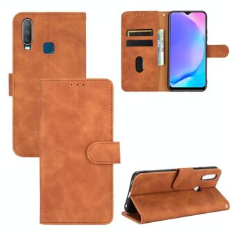 For vivo Y17 / Y15 / Y12 Solid Color Skin Feel Magnetic Buckle Horizontal Flip Calf Texture PU Leather Case with Holder & Card Slots & Wallet(Brown)