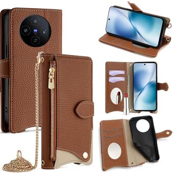For vivo X200s Crossbody Chain Fishtail Litchi Leather Phone Case(Brown)
